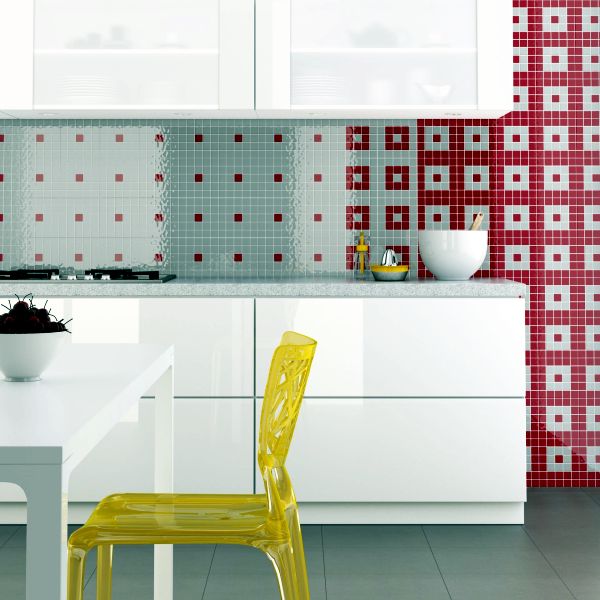 Marka Opoczno proponuje nam aż szesnaście wzorów szklanych mozaik. Są one dostępne w formacie 14,8×14,8 cm. Do wyboru mamy połączenie czerni z bielą, srebra z czerwienią, beżu z brązem i błękitu z ciemnym beżem. Zaletą mozaik jest to, że można je łatwo ciąć na pasy. Dzięki temu mamy możliwość stworzenia większej ilości elementów dekoracyjnych, a poza tym – możemy dostosować je do formatu wybranych wcześniej płytek.